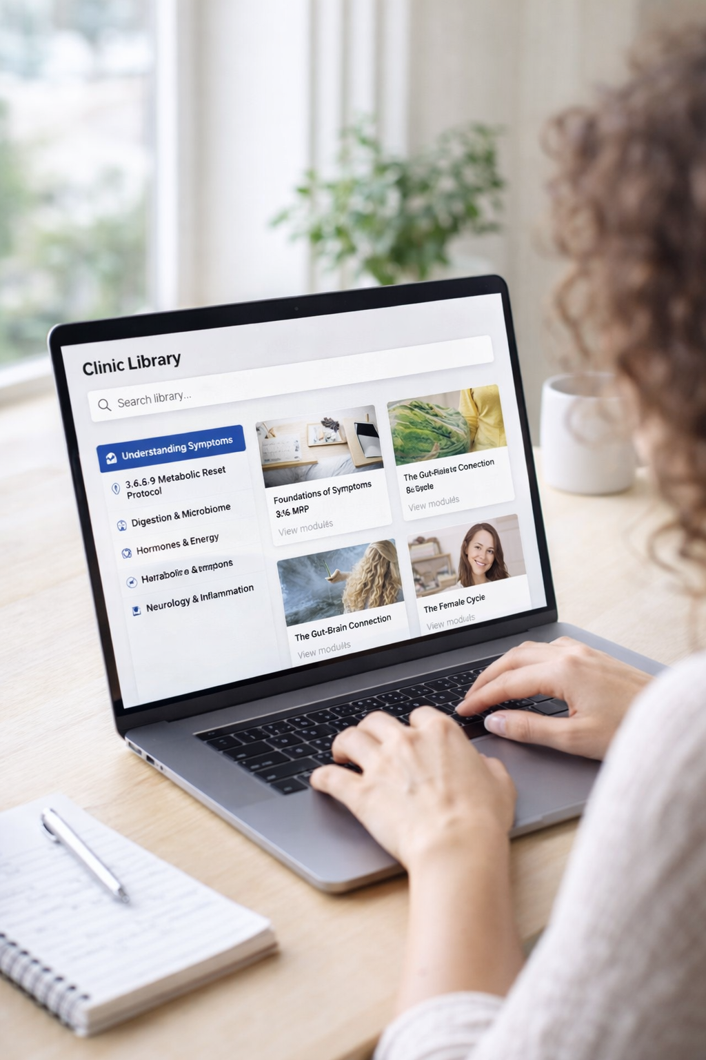 The Clinic Library provides the foundational education, context, and clinical frameworks that underpin this work — including years of teaching, recorded Live Clinic discussions, and the 3·6·9 Master Metabolic Reset Protocol™.